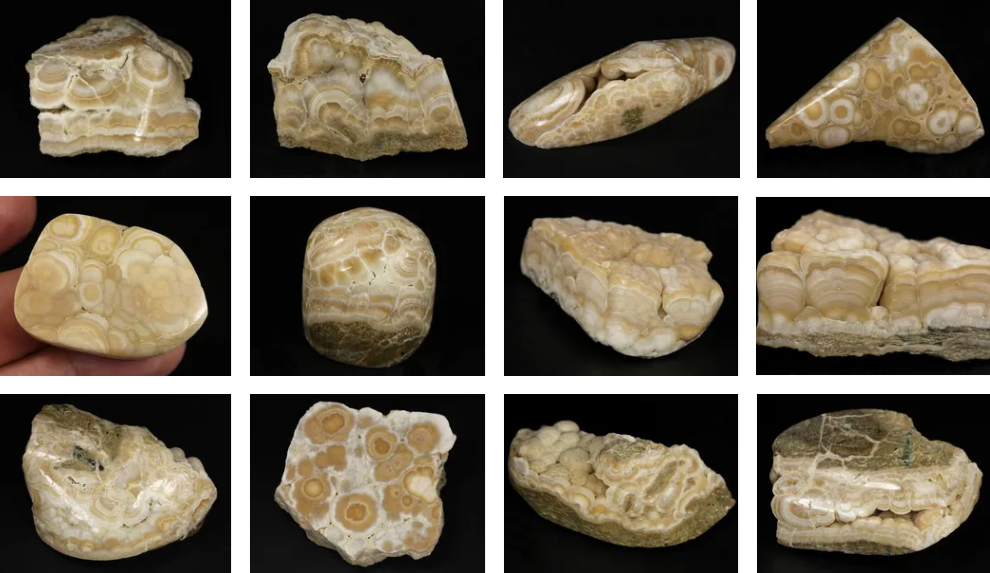 Арагонит узорчатый (м-е Россия, КЧР, Урупский район. Частично полированные образцы, красивый рисунок)