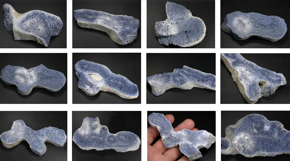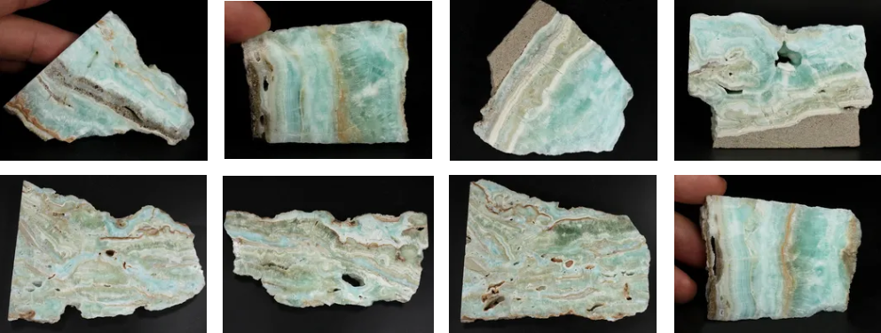 Арагонит голубой, полированные пластины (м-е Африка, цвет природный, интересная узорчатая структура)