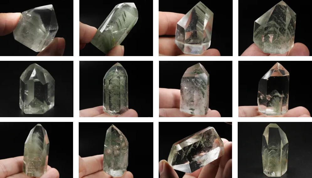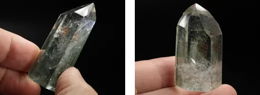 Кварц с хлоритом, полированные кристаллы (фантомы в этих образцах не выражены, но включения хлорита образовали волшебный "аквариумный" эффект - можно долго любоваться внутренним наполнение горного хрусталя. М-е Бразилия)