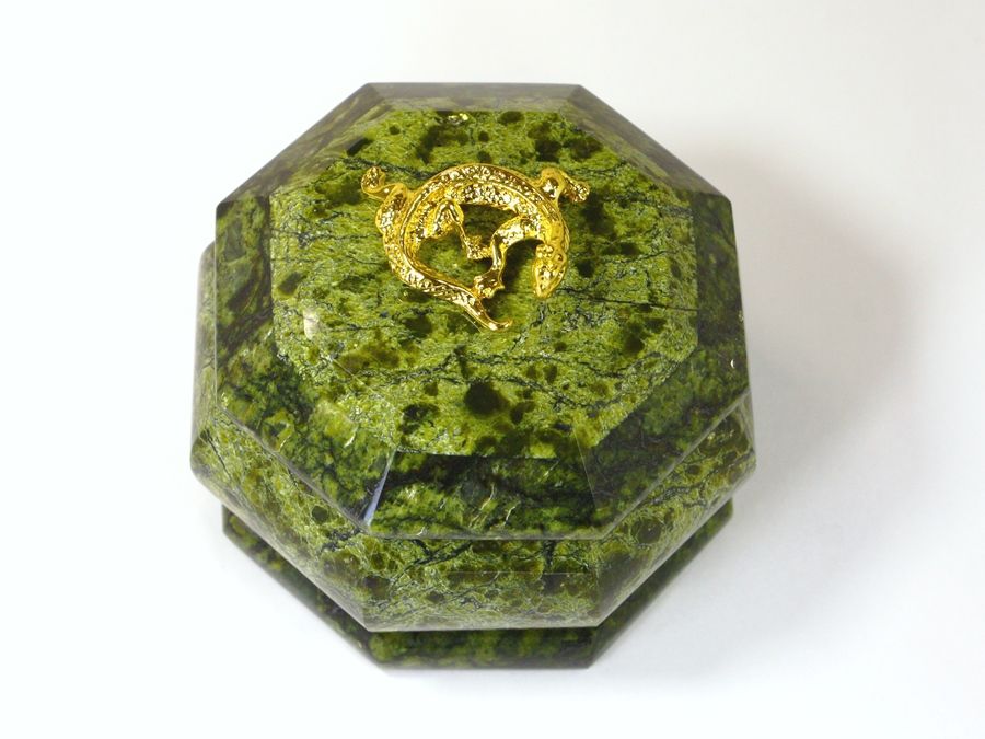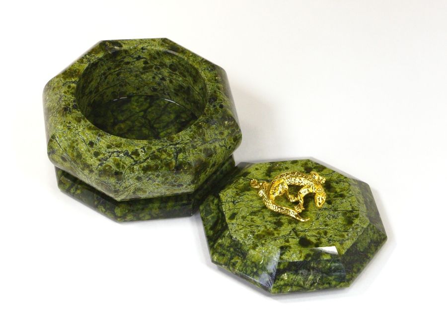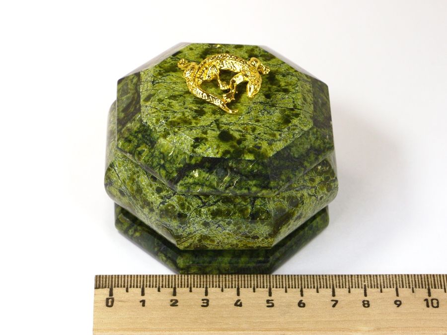 Шкатулка 6-гранная Змеевик, Урал (70*70*60 мм, 325 г) №15117