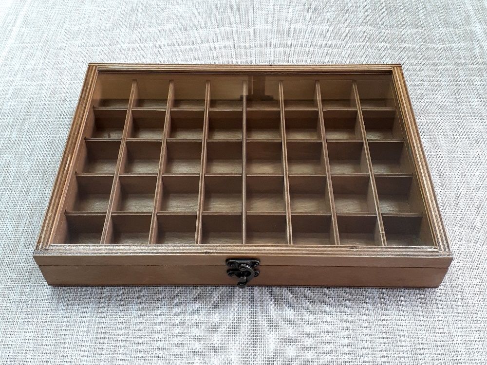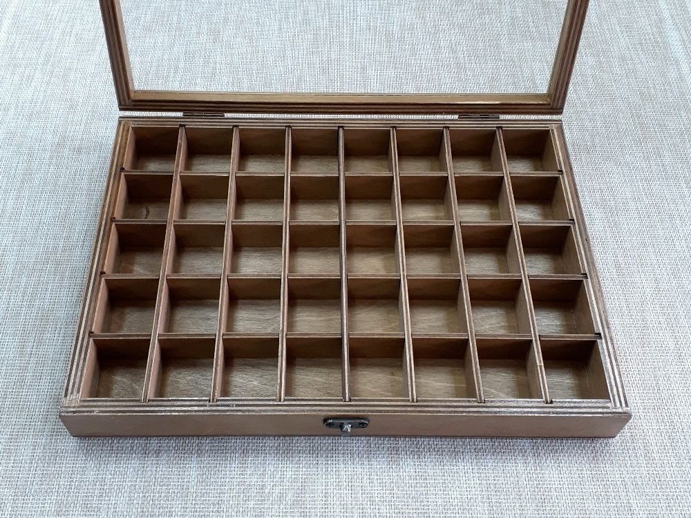 Коробка для хранения коллекции камней и минералов на 40 ячеек со стеклянной крышкой