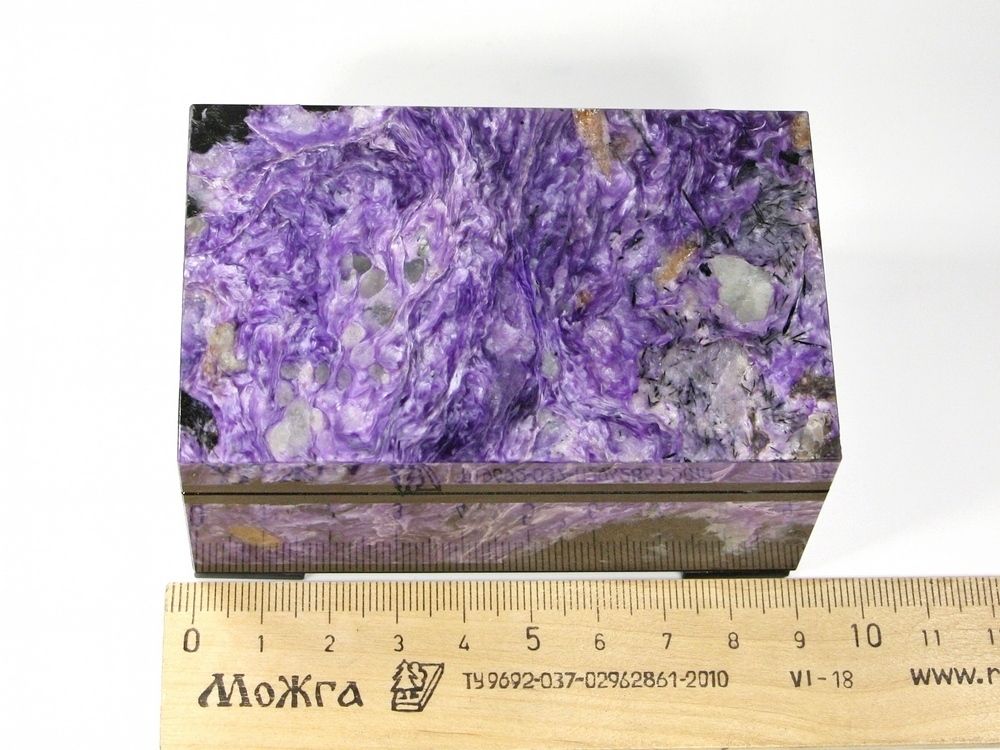 Шкатулка Чароит с крышкой на шарнирах, Россия, Якутия (91*57*43 мм, 322 г) №26660