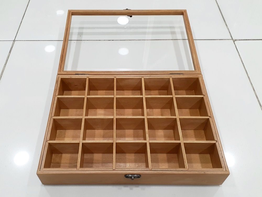 Коробка 20 ячеек, для коллекции камней и минералов, цвет "Клен", крышка со стеклом (32*23*6 см, 1200 г) №25952