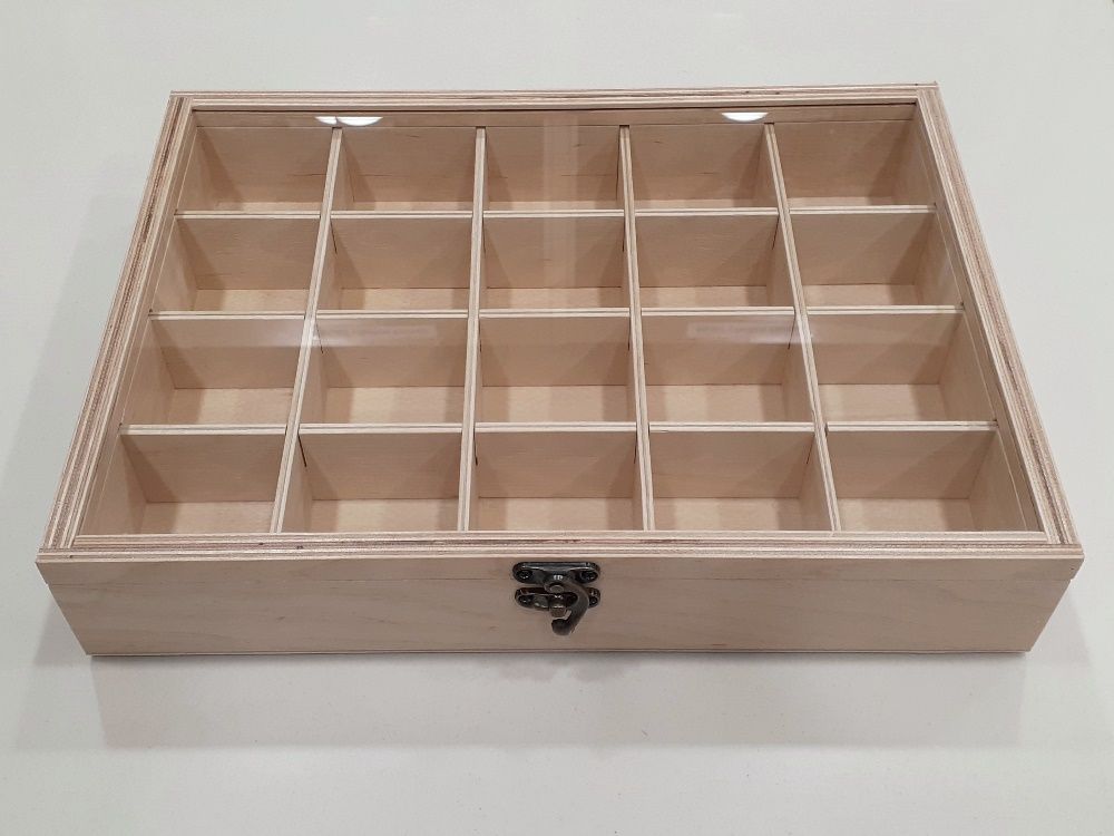 Коробка 20 ячеек, для коллекции камней и минералов, цвет "Натура", крышка со стеклом (32*23*6 см, 1200 г) №25953