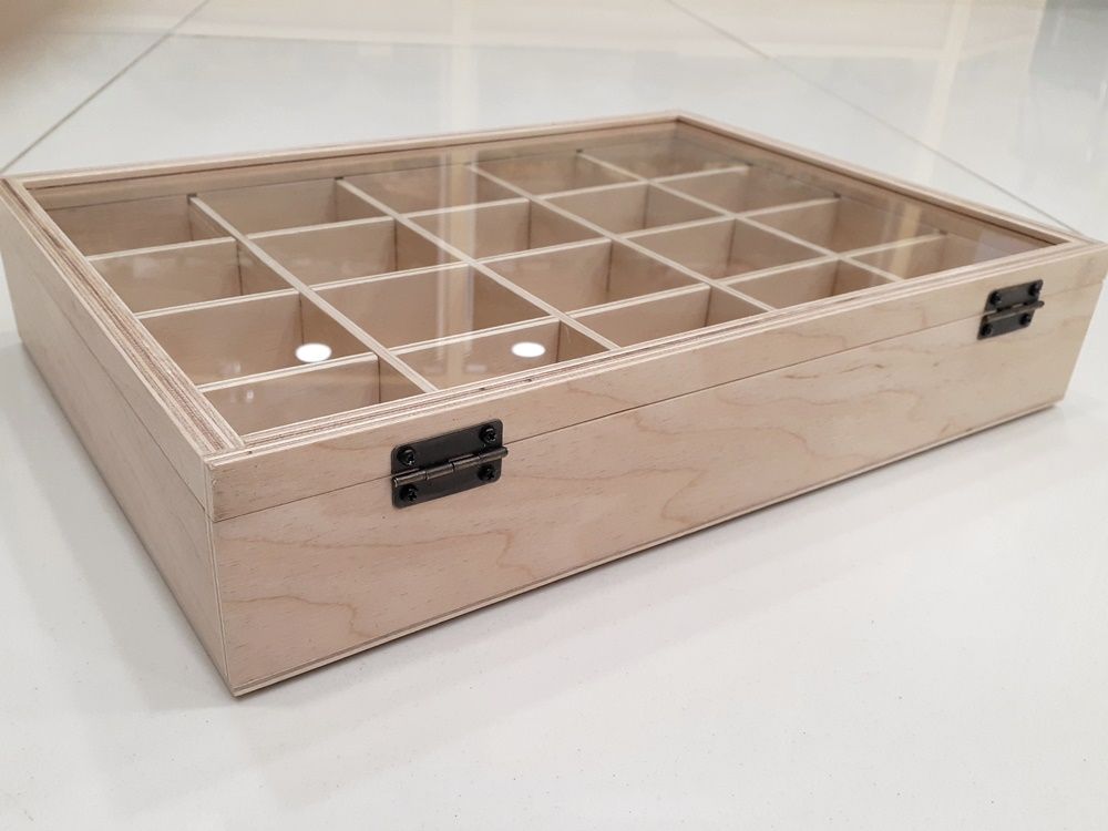 Коробка (шкатулка, ящик) для камней и минералов, крышка со стеклом.