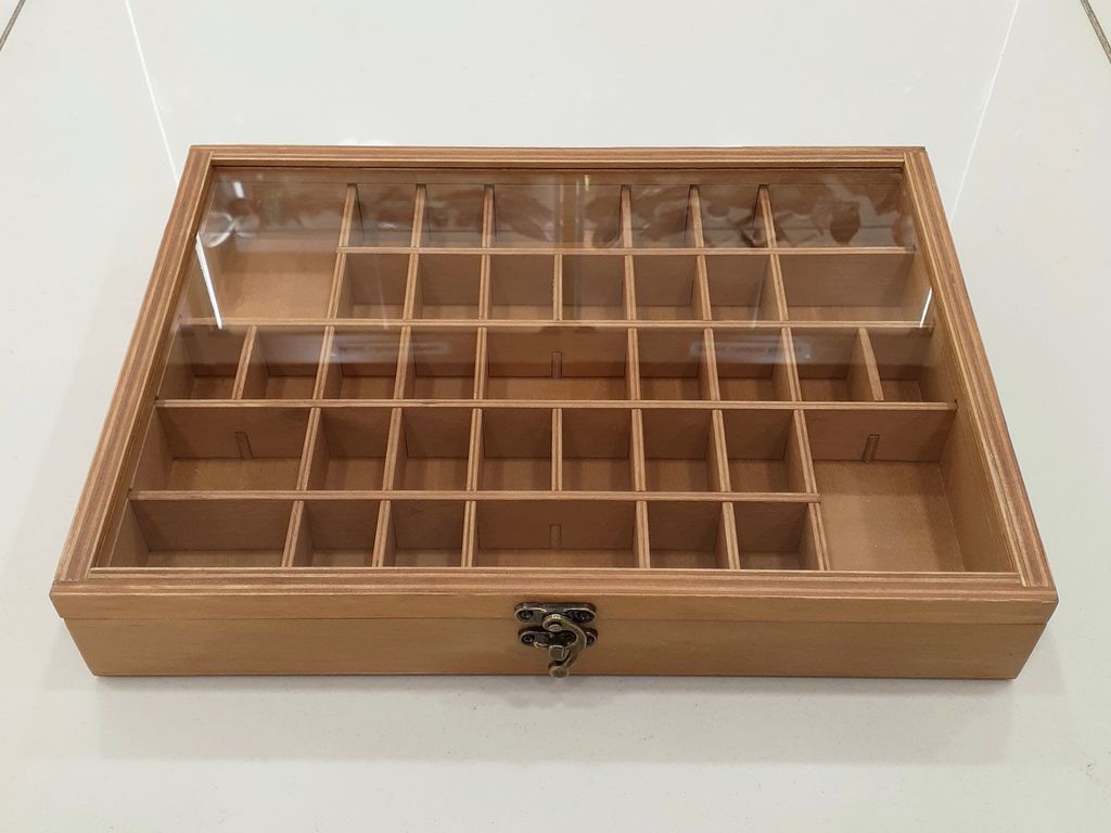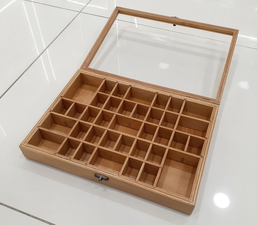 Коробка для хранения коллекции камней и минералов на 37 ячеек разного размера, со стеклянной крышкой, цвет "Клен".